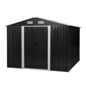 8′ x 10′ Tool Storage Shed Spacious and durable, this charcoal black tool storage shed offers a robust solution for