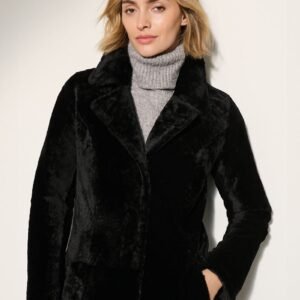 Luxurious 3/4-length coat for warmth and elegant winter style Made from African curly lamb shearling with a beautiful texture Designed