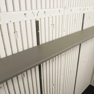 Lifetime storage shed with heavy-duty construction—no maintenance or repainting required Interior stays dry, bright and pest free Built-in shelving and