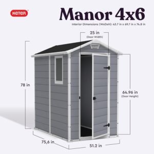 Keter Manor 4×6 Resin Outdoor Storage Shed Kit-Perfect to Store Patio Furniture, Garden Tools Bike Accessories, Beach Chairs and Lawn Mower, Grey & White