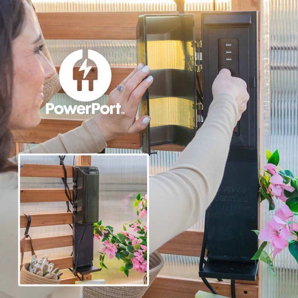 - POWERED UP: Our proprietary PowerPort™ for fans, misters, and more