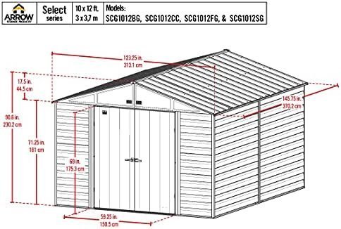 Arrow Select 10′ x 12′ Outdoor Lockable Steel Storage Shed Building, Charcoal