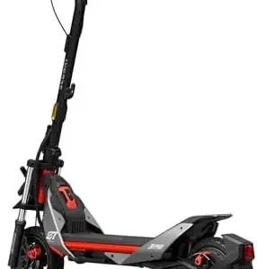 【Comfort and Stability】The scooter features dual rugged swingarm suspension using the aircraft landing gear system, which provides the best shock absorption for a smooth SUV-like ride over bumpy and challenging roads. Its 10″x3″ tubeless knobby tires are thickened and ruggedly processed with high wear and puncture resistance for a more stable and smoother glide over diverse terrains.