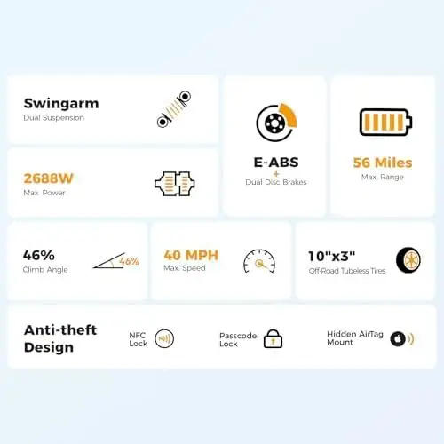 Dual Motor, E-ABS + Front & Rear Disc Brakes, Foldable, Swingarm Suspension
