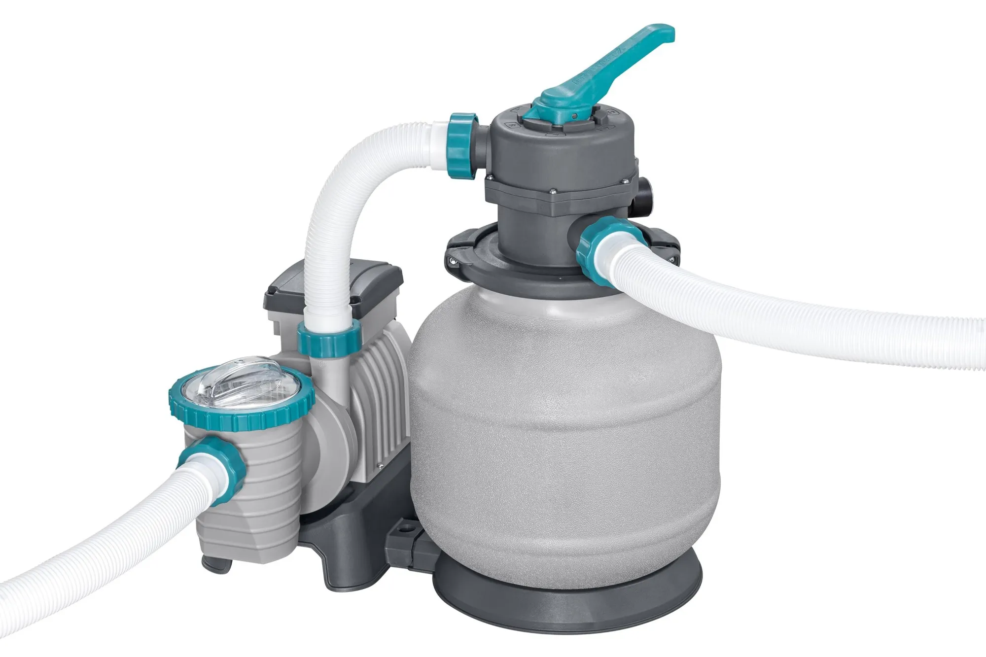 Includes a 2,200 gal./h (8,327 L/h) sand filter pump and Polysphere™ pool filtration balls (washable, reusable sand filtration replacement)