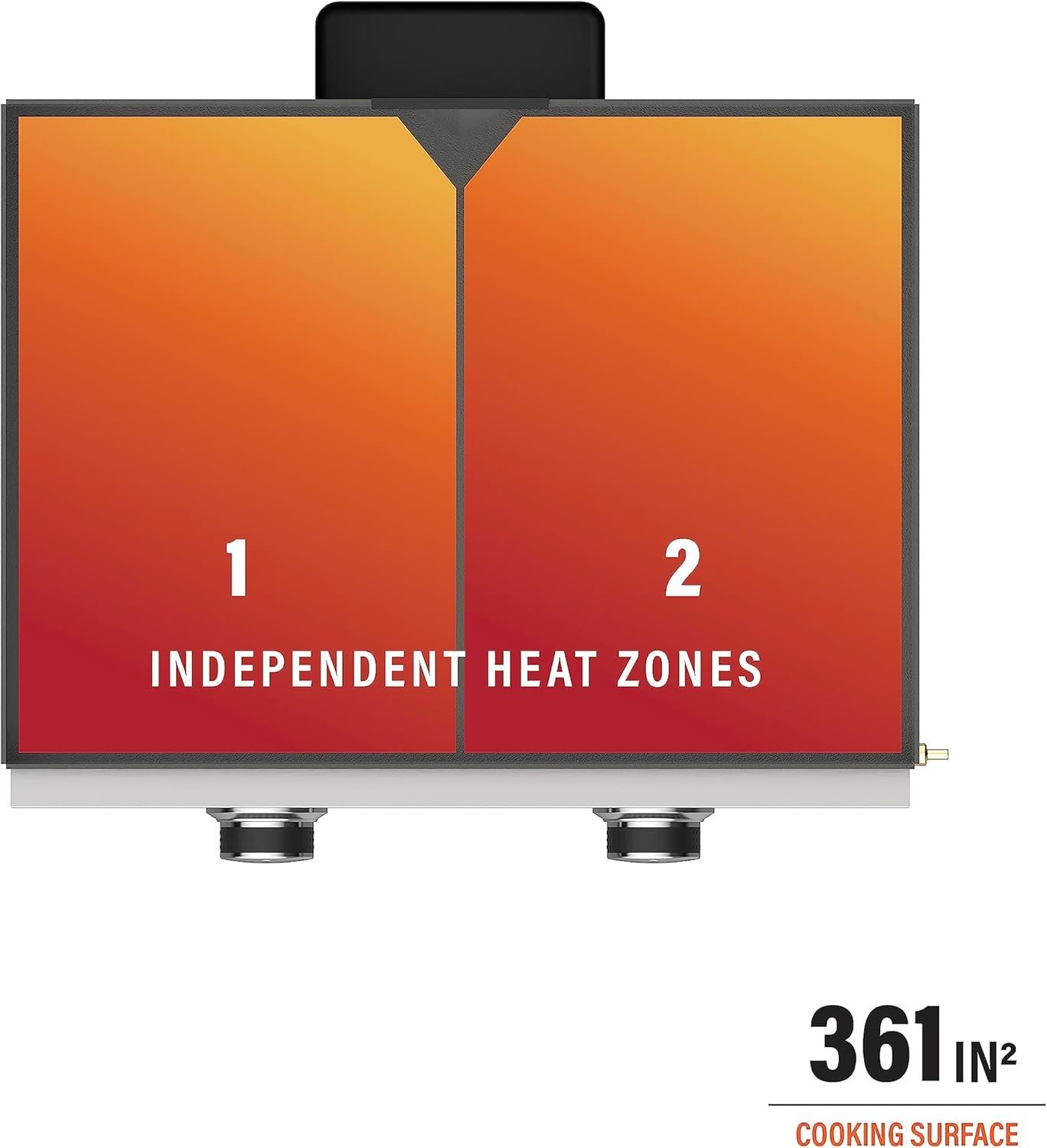 Dual H-Shaped Burners – Two independently controlled burners deliver a powerful 24,000 BTUs for fast, even heating across the entire griddle surface. Cook different foods at different temperatures with ease.