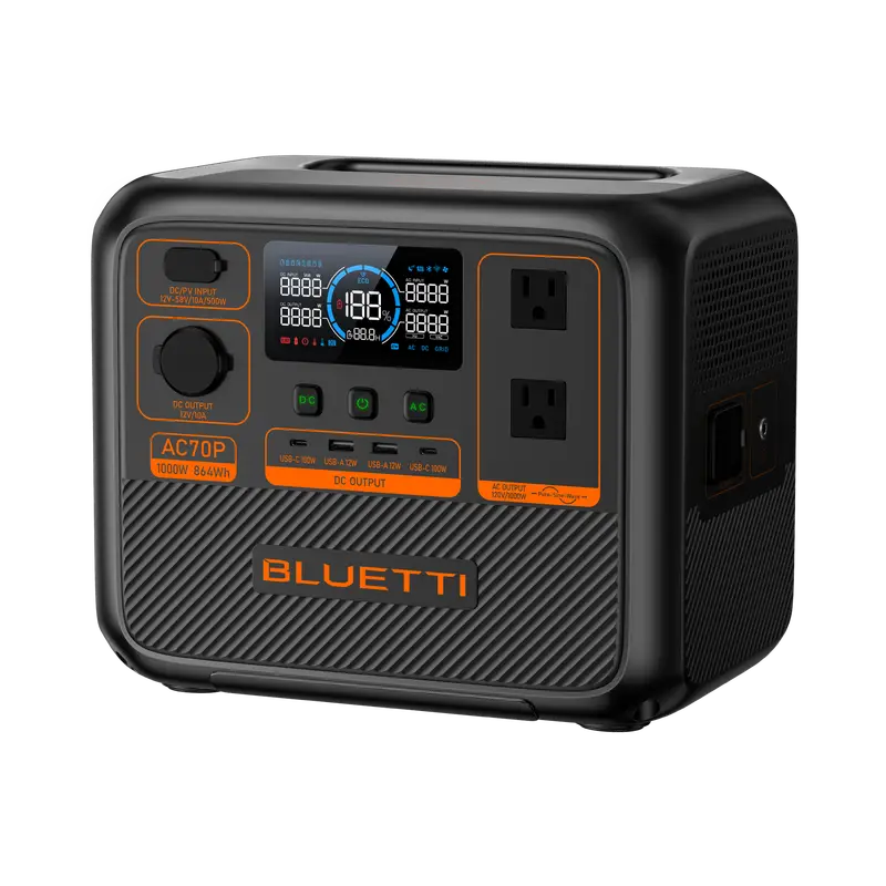 Elevate your on-the-go power solutions with the Bluetti AC70P Power Station! Boasting a robust 864Wh capacity and a 1000W continuous power, it effortlessly energizes your essential devices during outdoor adventures, RV escapades, or cozy moments at home.