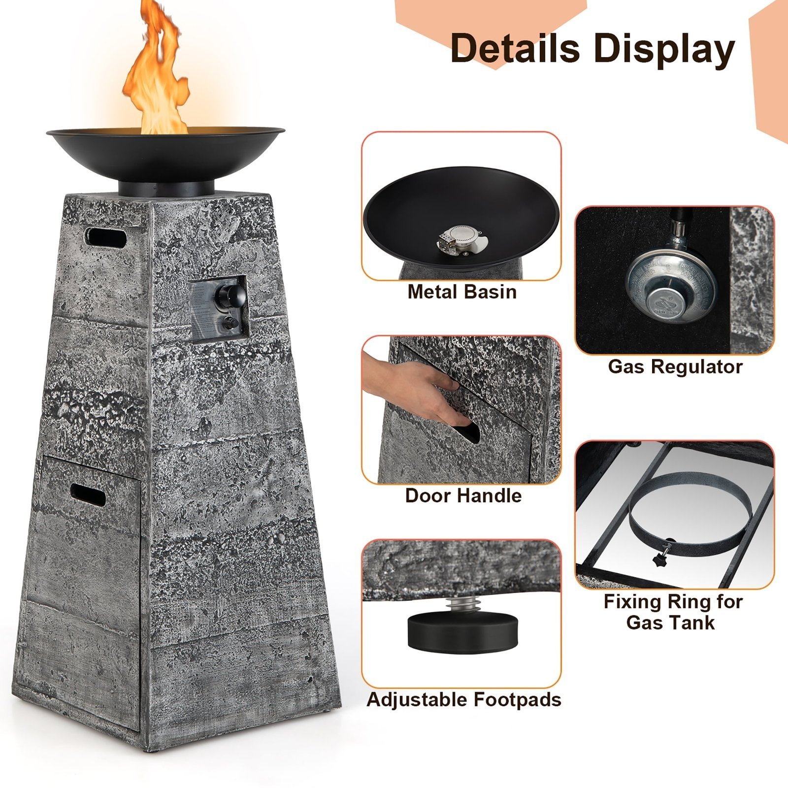 Costway 48 Inch Propane Fire Bowl Column with Lava Rocks and PVC Cover