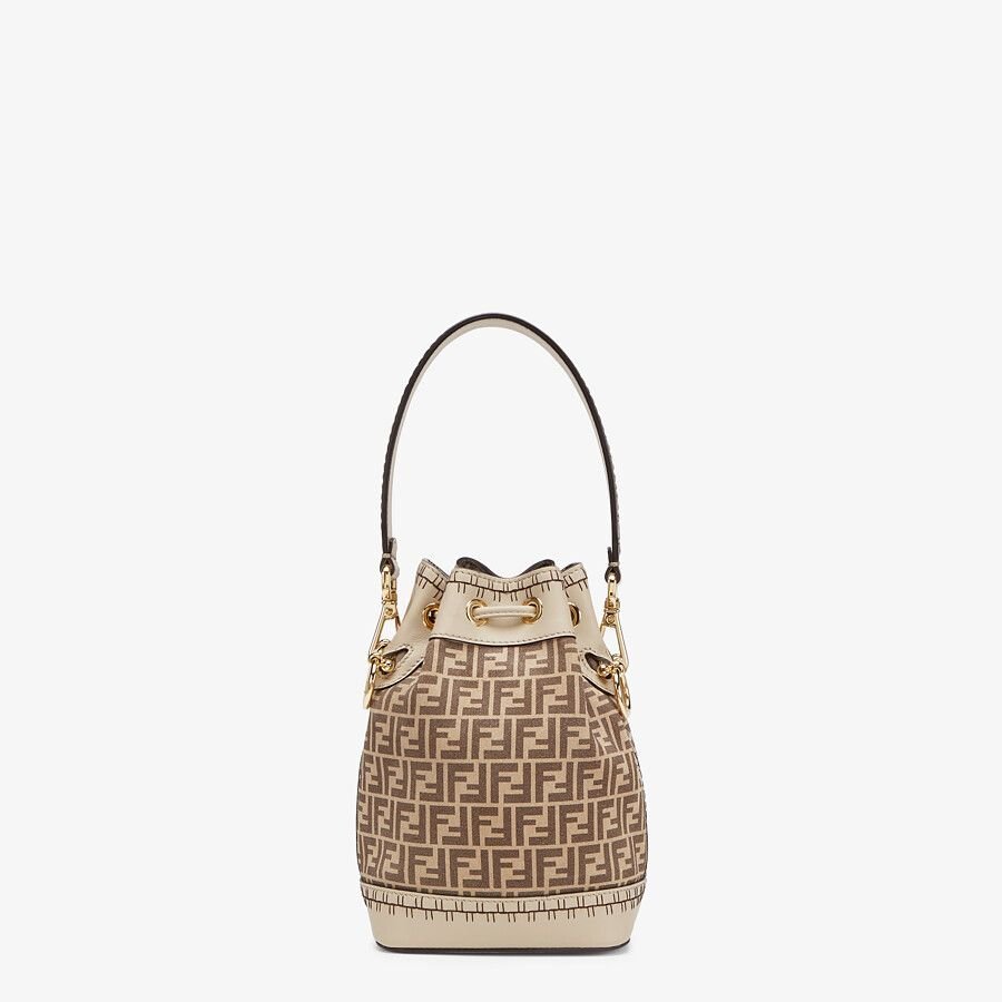 Small Mon Tresor bucket bag made of beige suede with brown FF motif print.