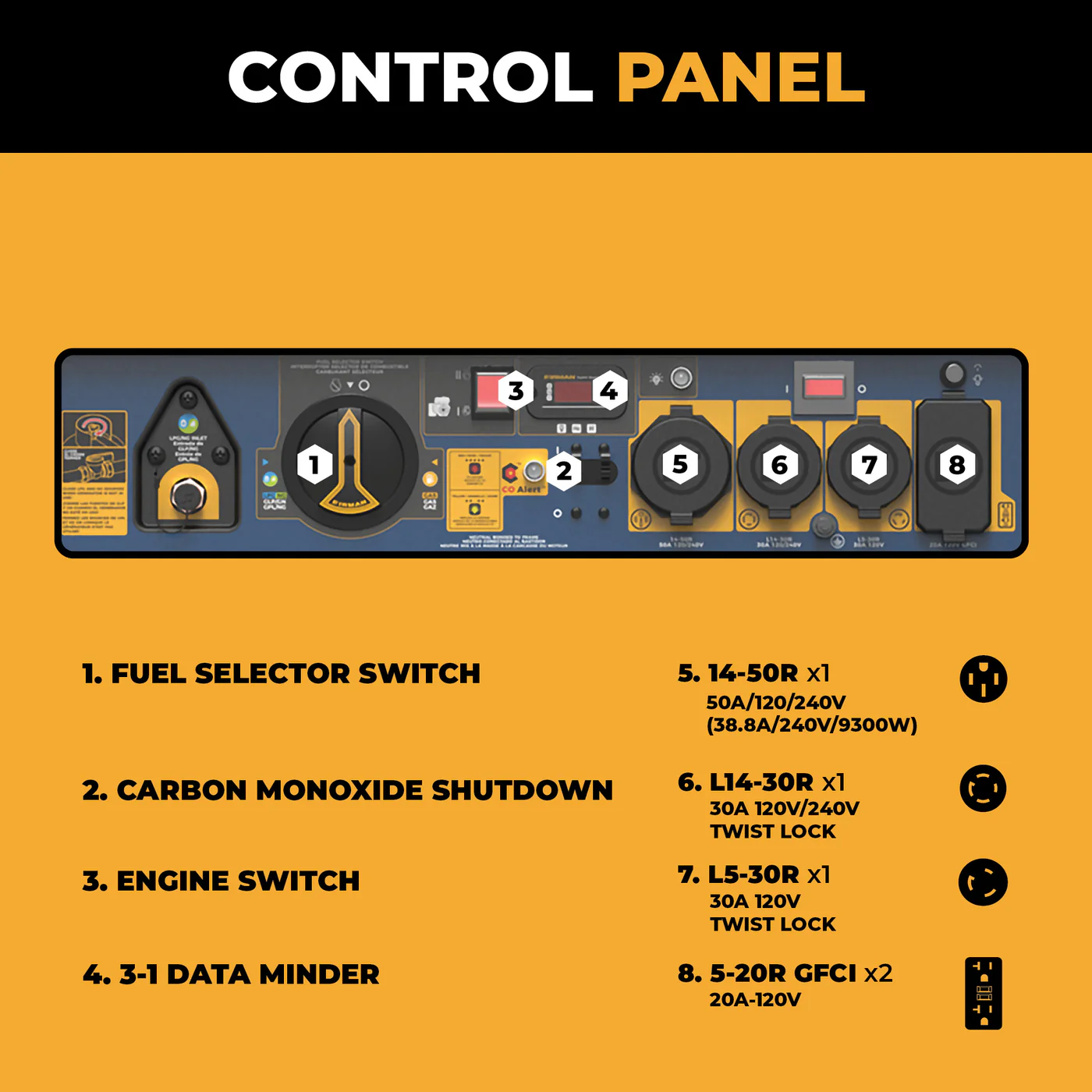Running watts 9300W (GAS), 8300W (LPG). 6900W (NG)
