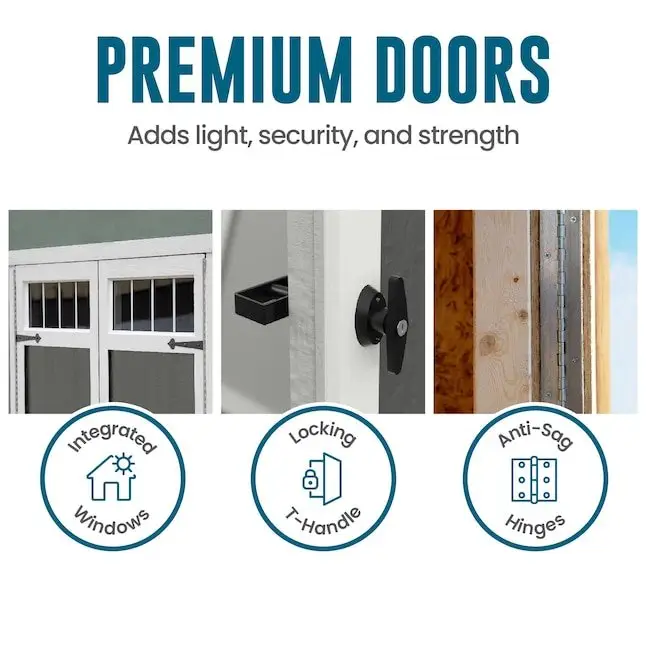 Bonus: complete floor system, integrated transom door windows, two arched vents, extra wide overhangs, decorative door trim and premium locking handle
