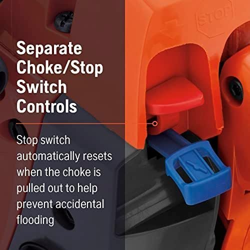 Effortless Start-Up: Smart Start allows this Husqvarna chainsaw to quickly and easily start up with minimal effort, while the gas chainsaw 24 inch blade has an inertia-activated chain brake to reduce the likelihood of injury due to kickback