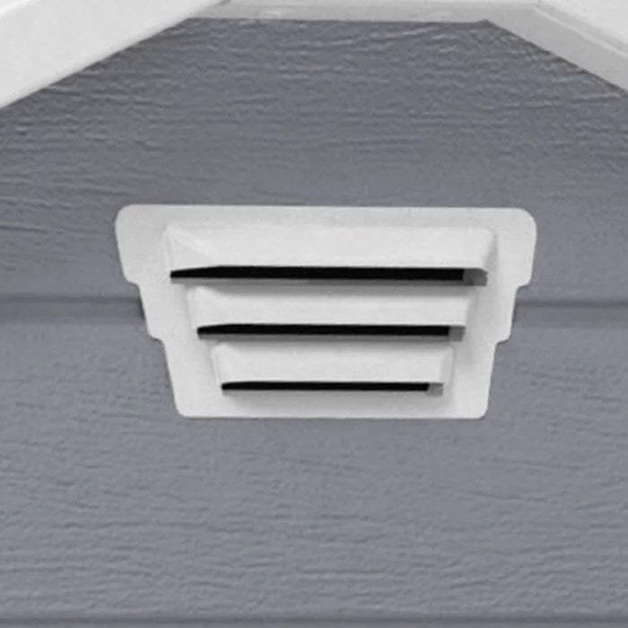 This shed is equipped with a ventilation vent at its peak to help circulate air. These features prevent the shed from becoming too musty during hot or wet weather.