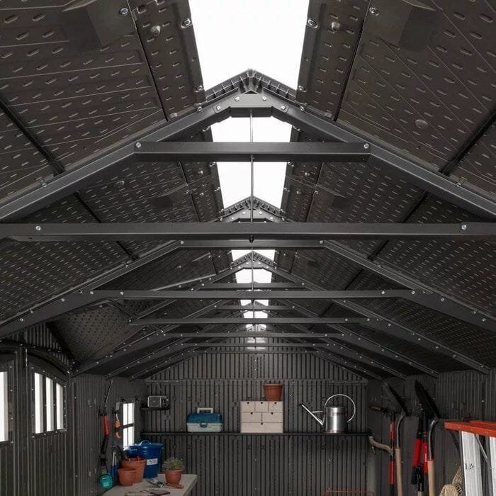 Lifetime’s 20-foot wide sheds are not only built for superior strength and durability, but they also have an attractive appearance and design to accent the beauty of your backyard. The convenient, centralized location of the doors allows for easy access to your storage without having to climb over things to reach items stored in the back. The innovative design and durable construction create the perfect solution for your storage needs.
