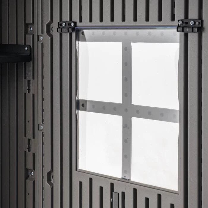- Steel-reinforced doors provide an extra-large opening, sturdy structure, and exterior padlock loop