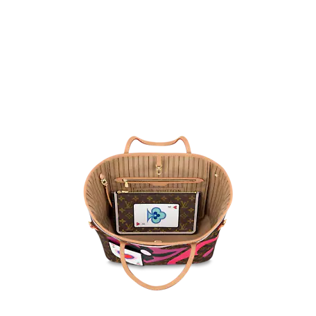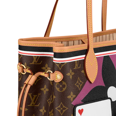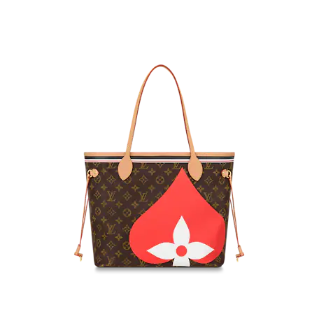 For Cruise 2021, Nicolas Ghesquière fashions the Neverfull MM tote bag in Monogram canvas adorned with a bold print blending Monogram Flowers and symbols of playing card suits. With a new outside pocket that looks like a playing card and another on the removable zipped pouch, this versatile tote becomes a playful homage to gaming.