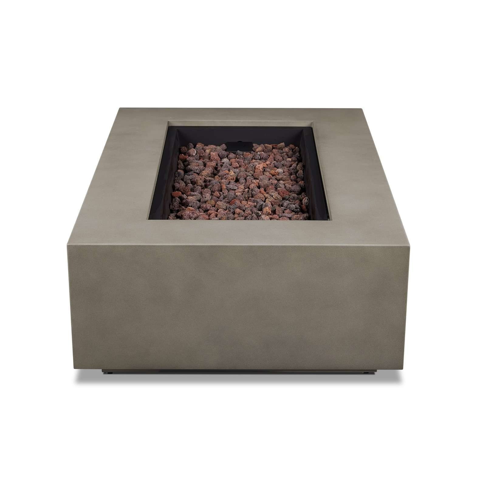 Make a stunning addition to your outdoor space with the clean, contemporary design of the Aegean rectangle gas fire table. Made of durable steel with a lightly textured finish, this outdoor fire table features a reliable push-button ignition and has adjustable flame height. Gas fire pit table with leveling feet, stainless steel burner, burner lid, lava rock, storage cover, propane hose with regulator and natural gas conversion kit are included. Providing 50,000 BTUs of heat, this outdoor propane fire pit can be converted to natural gas by a certified natural gas technician using the conversion kit. When not in use, transform this gas fireplace into a useful outdoor coffee table with the matching burner lid. Complete your patio set with the Aegean outdoor chair, loveseat, sofa and propane tank cover that doubles as a side table. Real Flame® gas fire pits are CSA certified and weather, sun and rust resistant.