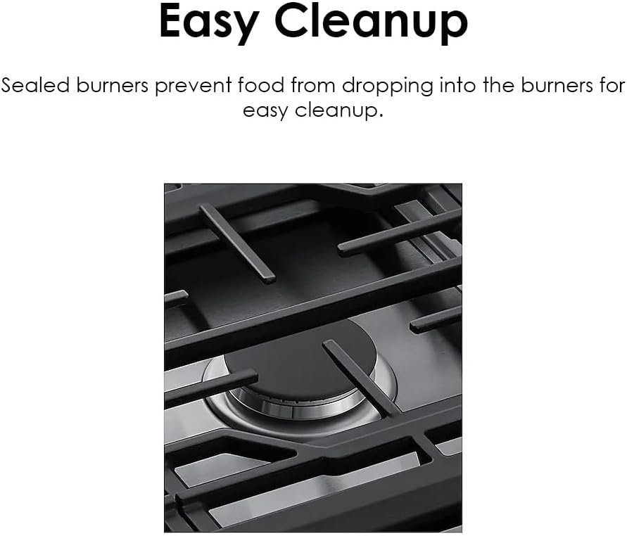 EASY CLEANUP: Sealed burners prevent food from dropping into the burners for easy cleanup.