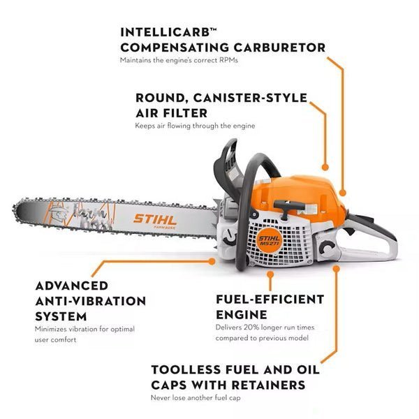 The MS 271 Farm Boss is even better than the MS 270 model. Loaded with more features and better technology, the MS 271 boasts a highly efficient engine that provides operators with 20% longer run times and 50% fewer emissions compared to previous models. Go longer between changing air filters with an innovative, pre-separation air filtration system that lasts 5x longer. This compact, ergonomically designed Farm Boss chainsaw delivers high performance season after season.
