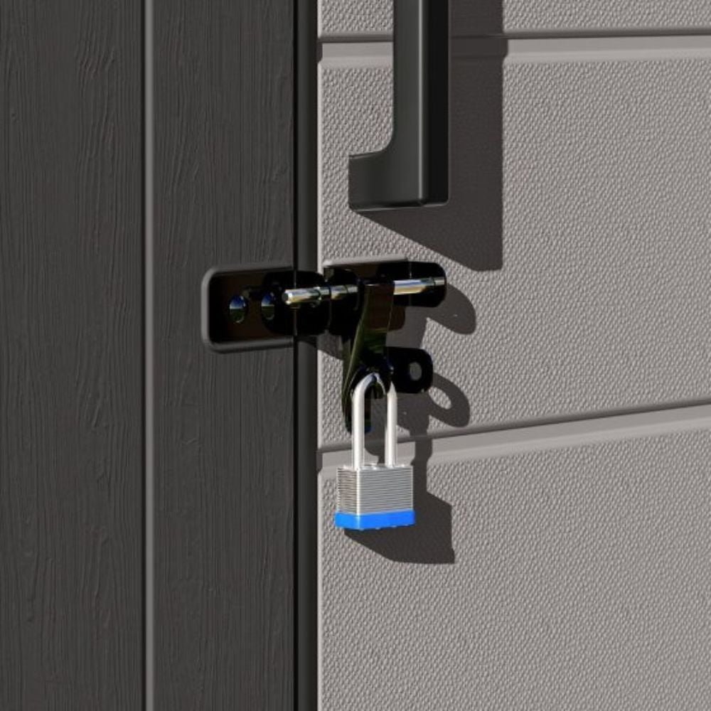 - Pad-lockable side door access to keep contents safe and secure (padlock not included)