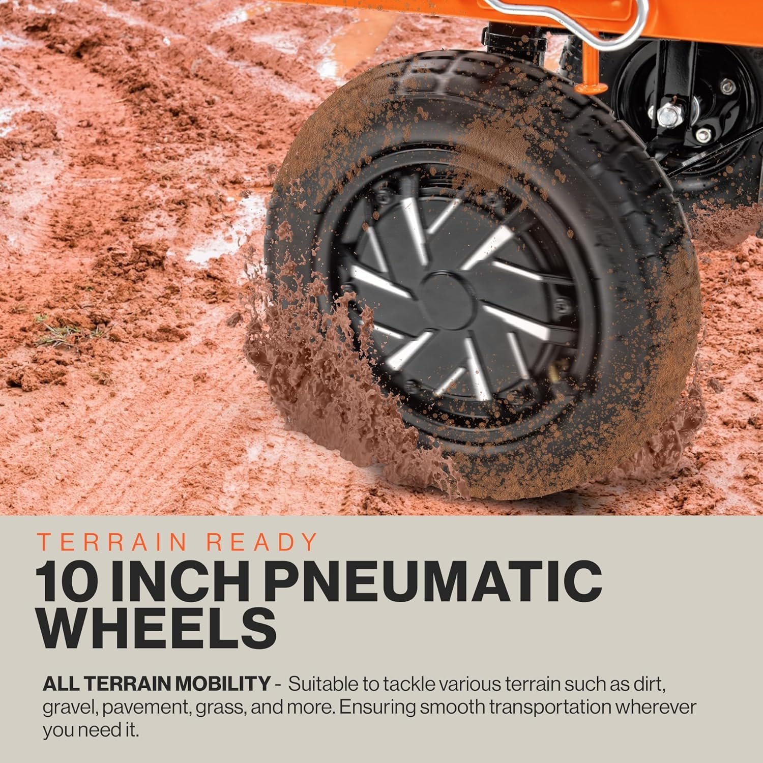 • ALL-TERRAIN WHEELS: Features durable 10-inch pneumatic wheels, ensuring smooth operation over any type of landscape or terrain.